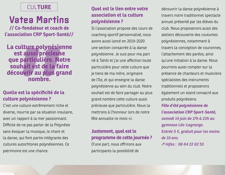 Au-delà du sport-santé, notre association est fière d'être un lieu de transmission et de partage pour la culture polynésienne.